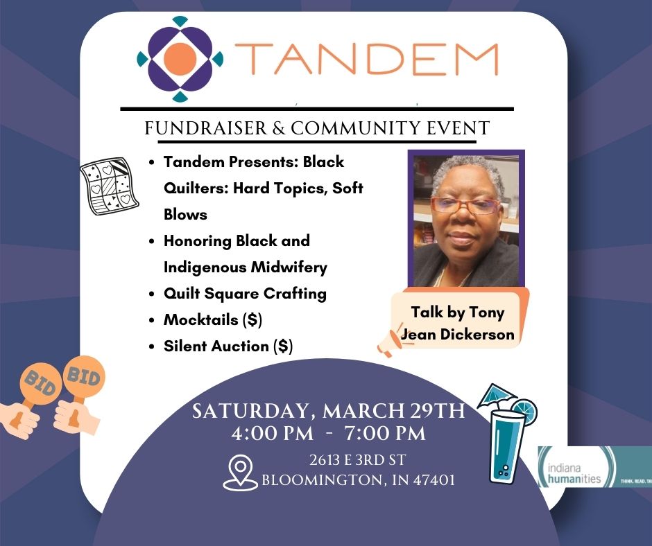 Tandem is in the final stages of its community quilt project. The quilts being made by community members will be hung at Tandem in birthing and postpartum rooms – to serve as a visual reminder of the supportive community welcoming the birth of new families in our community. The talk by Dr. Dickerson on the history and significance of quilts, particularly rooted in the African American tradition, holds immense importance for our community at Tandem. This topic offers a unique opportunity to deepen our understanding of cultural heritage, social connections, and the power of symbols, aligning perfectly with the values and goals of our organization.